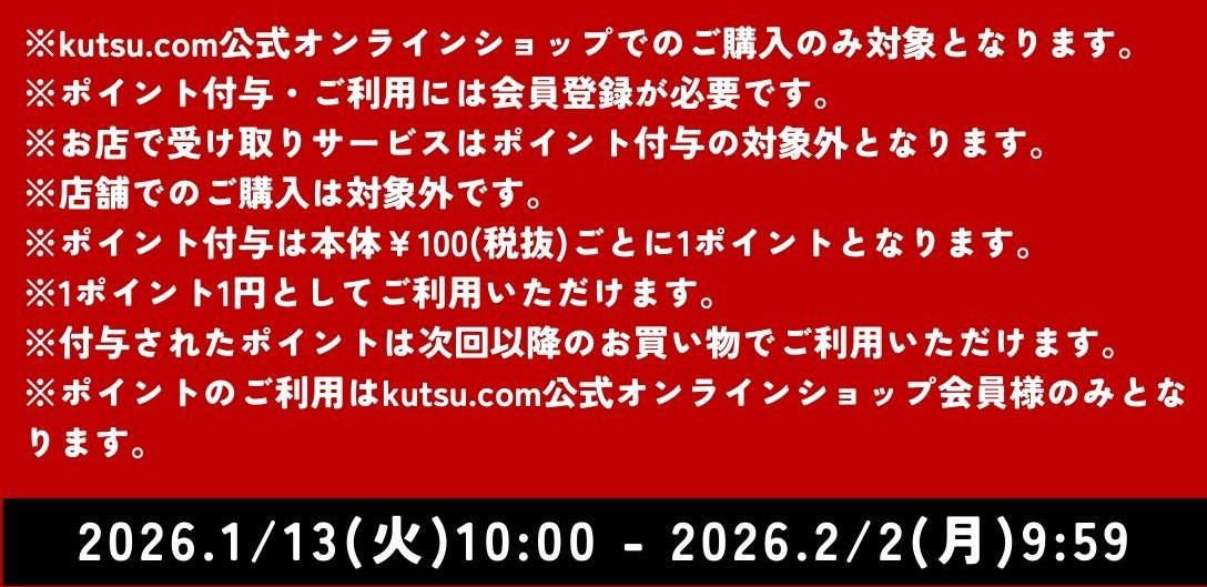 kutsu.com公式オンラインショップでは、kutsu.comアプリ会員のポイントはご使用いただけません。