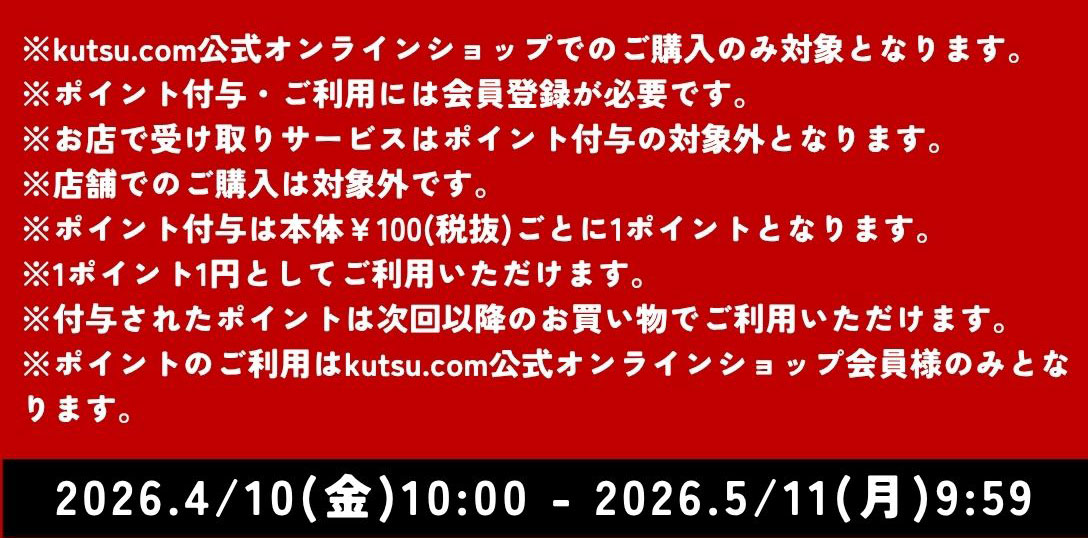 ポイントサービスは、kutsu.com公式オンラインショップ会員向けのサービスです。