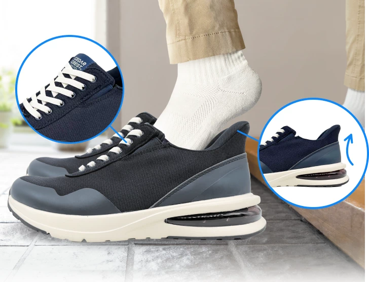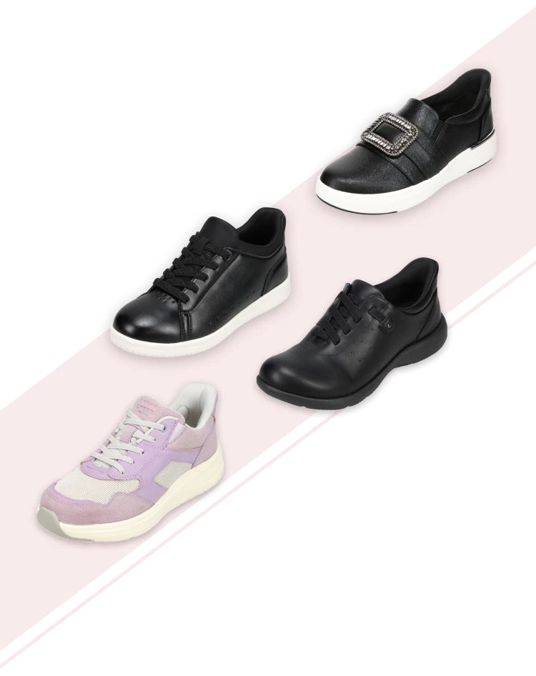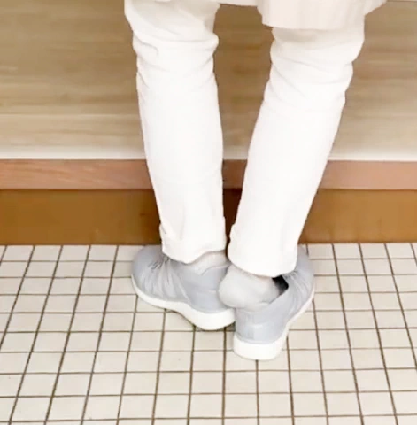 かかとの靴べら形状でスムーズに脱ぎ履きしやすいのに、内側のパッドで歩行時は脱げにくい。