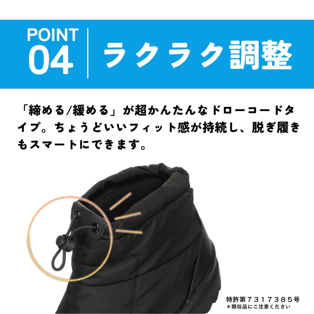 さらに、ダウン素材で足元をやさしく包み込み、寒い冬もあたたかく快適に。