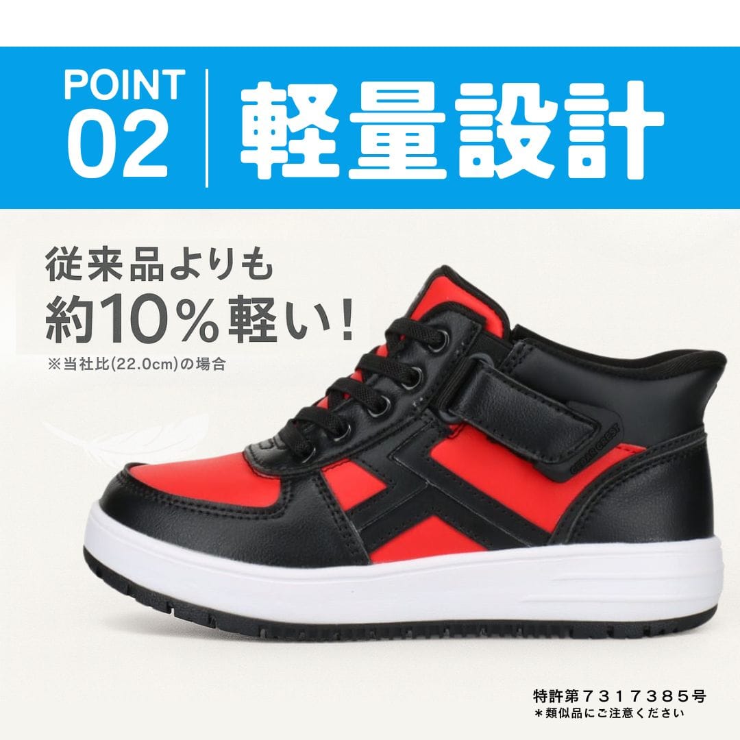 また、従来品よりも約10%軽い(当社比・22.0cmの場合)軽量設計で、長時間歩いても疲れにくく、元気に走り回るお子様の足元を快適にサポートします。