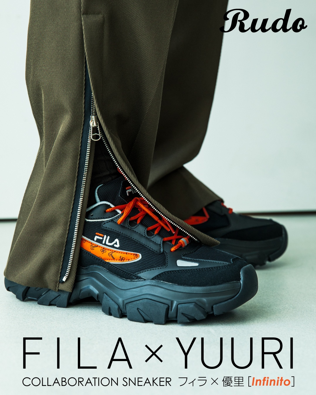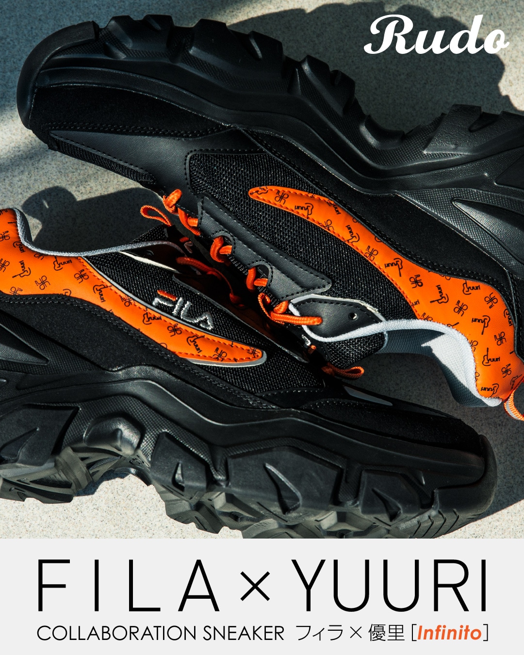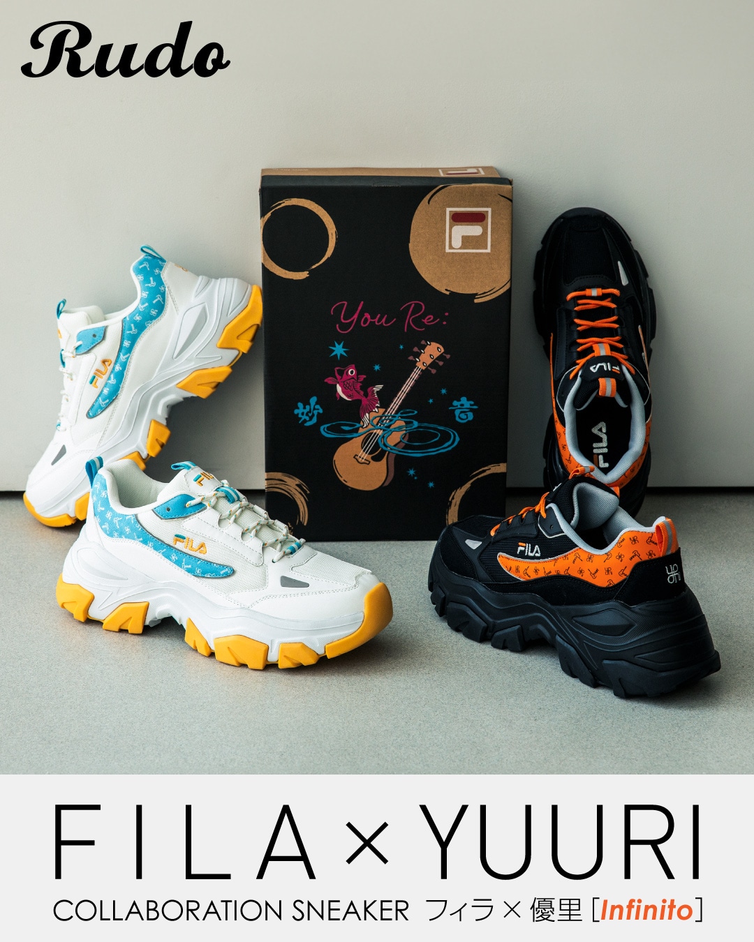 FILAの洗練されたファッション性と優里の鋭いセンスが融合した、特別な一足です。