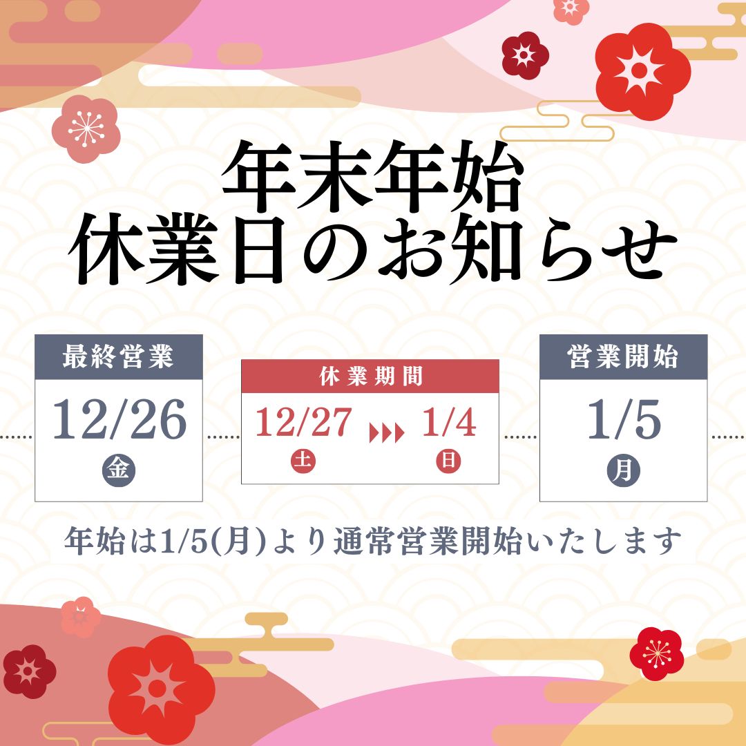 2025年12月27日(土)~2026年1月4日(日) 年末年始休業